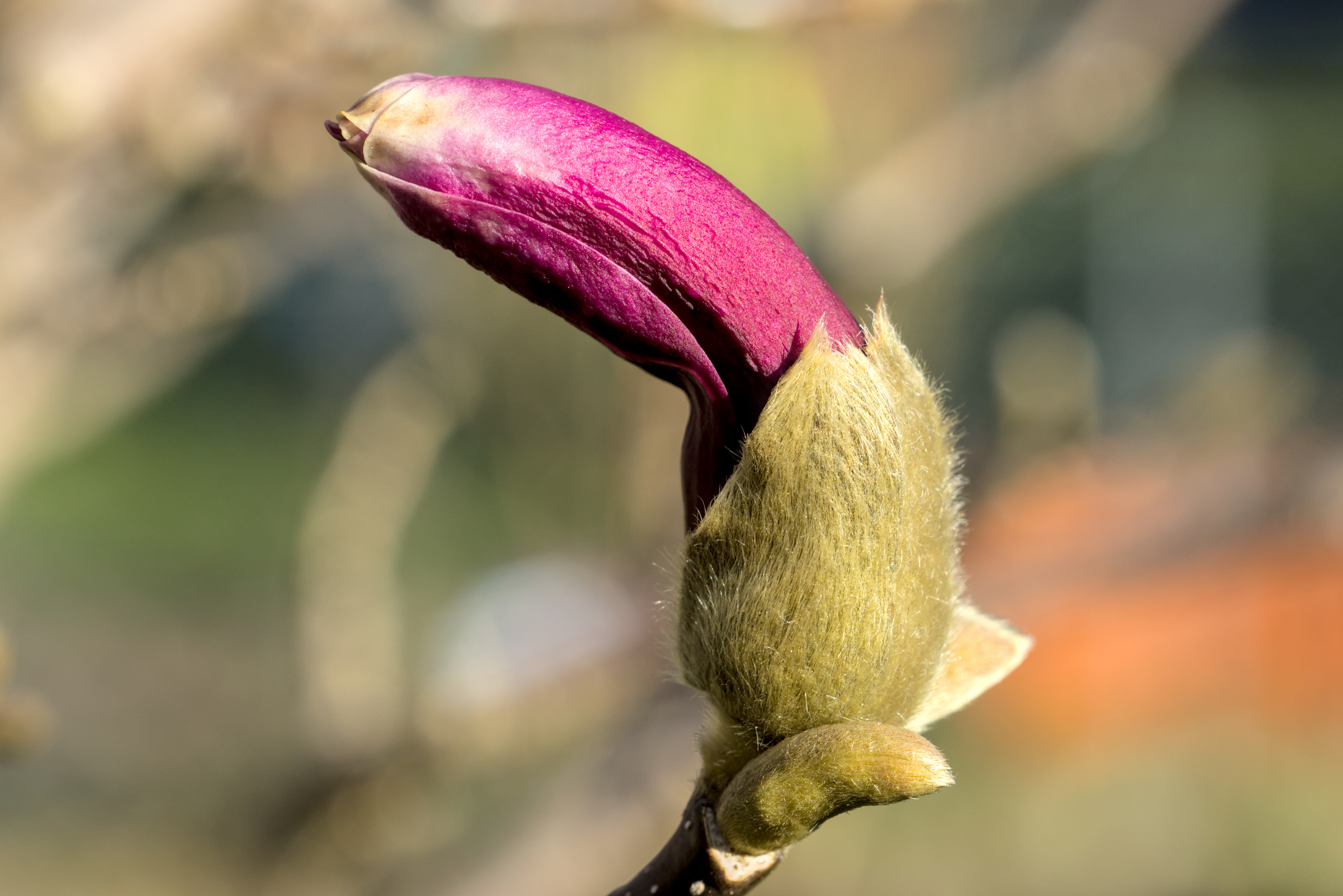 Knospe einer Magnolie kurz vor dem Aufbrechen.