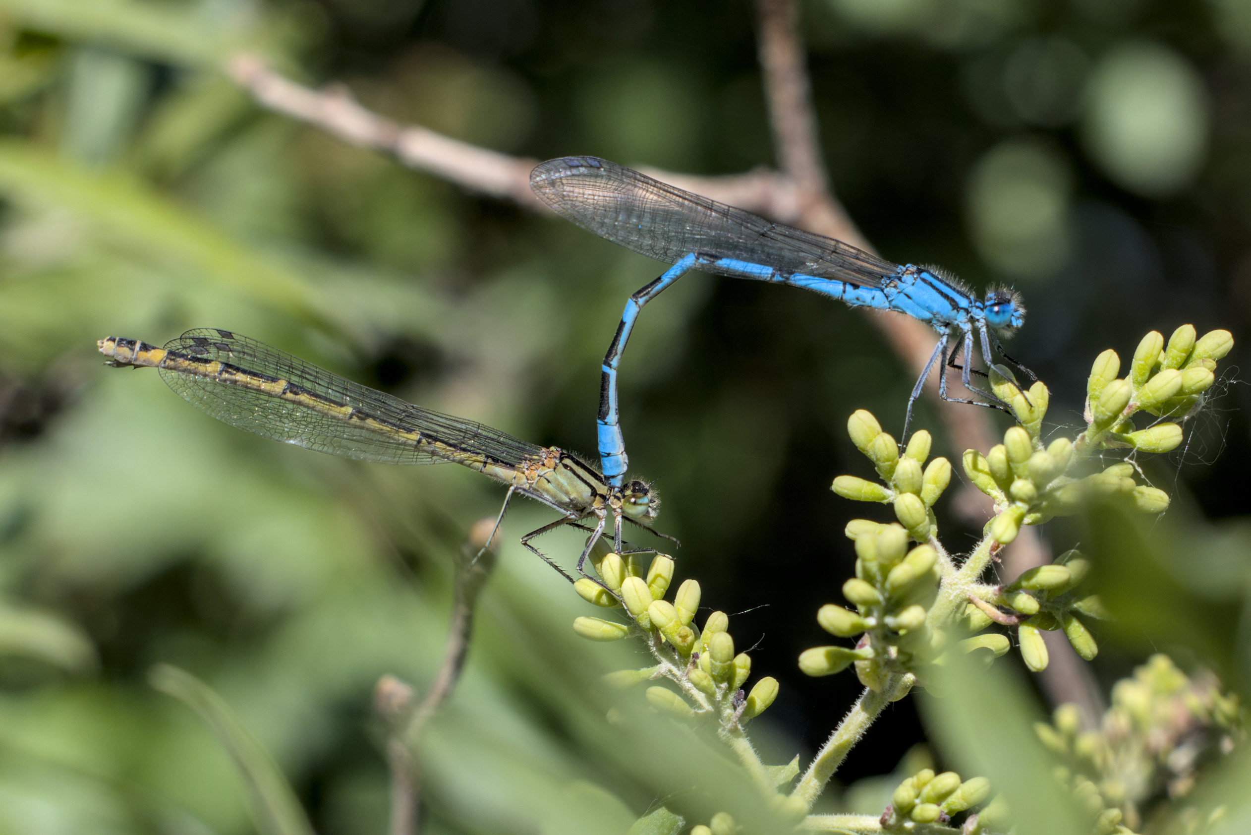 Zwei Kleinlibellen bei der Vorbereitung zur Paarung.