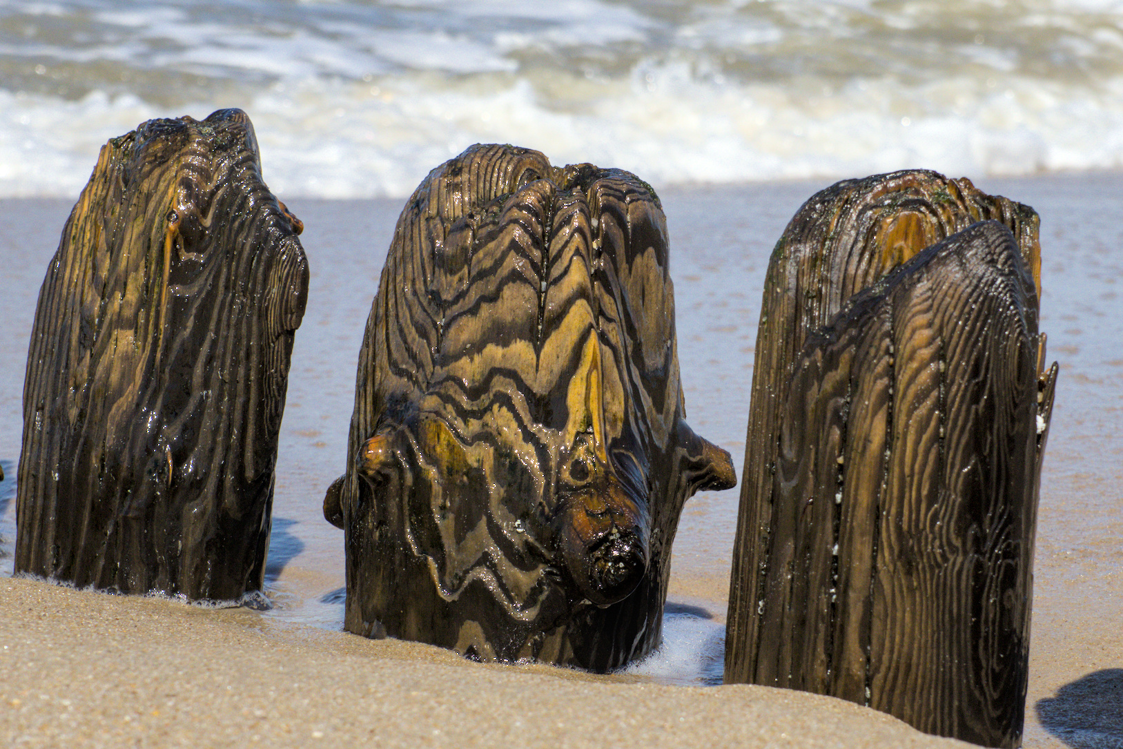 Wodden groins, worn out by salt water on Rantum beach on the island of Sylt.