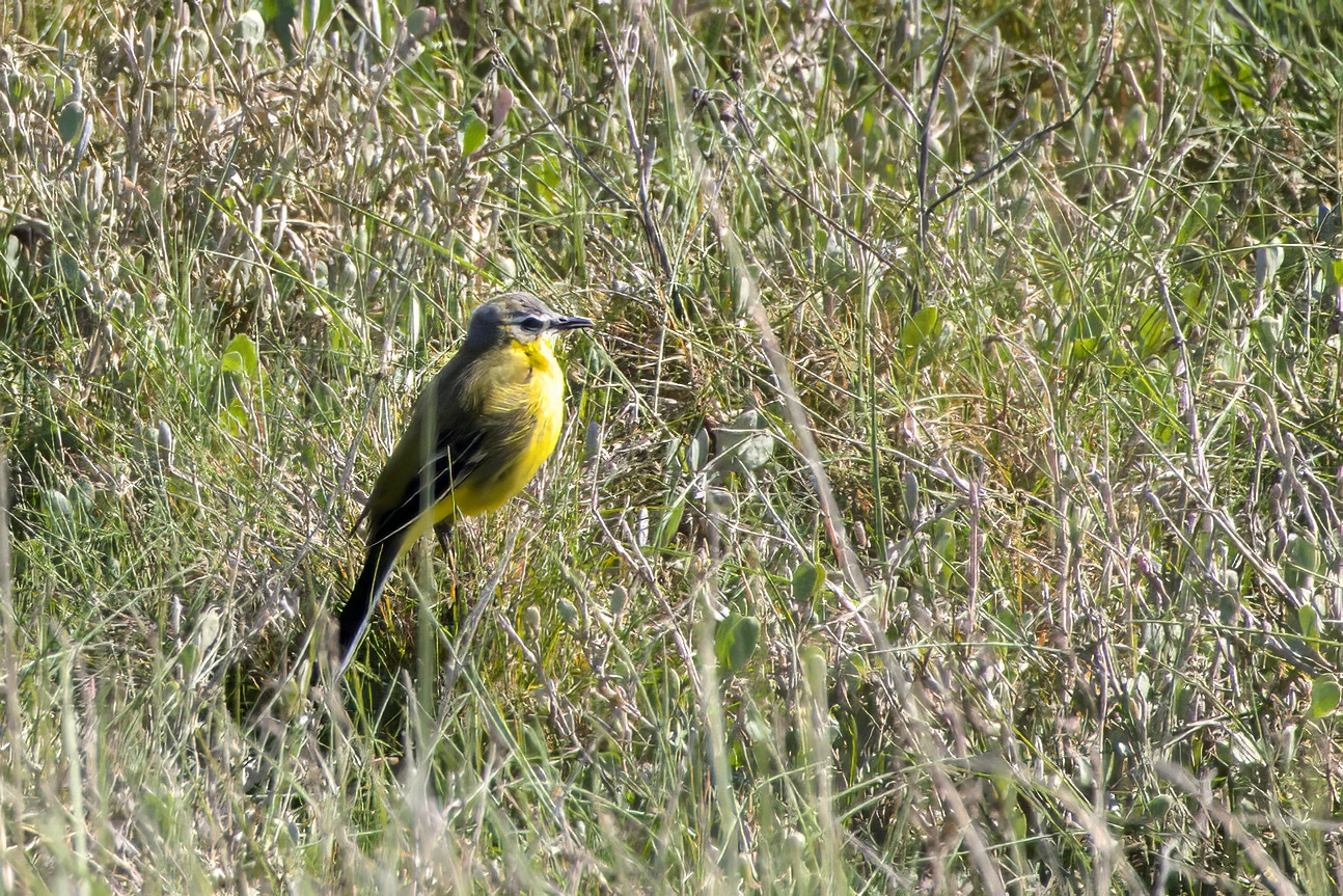 A Western Yellow Wagtail on the guard close to its nest.